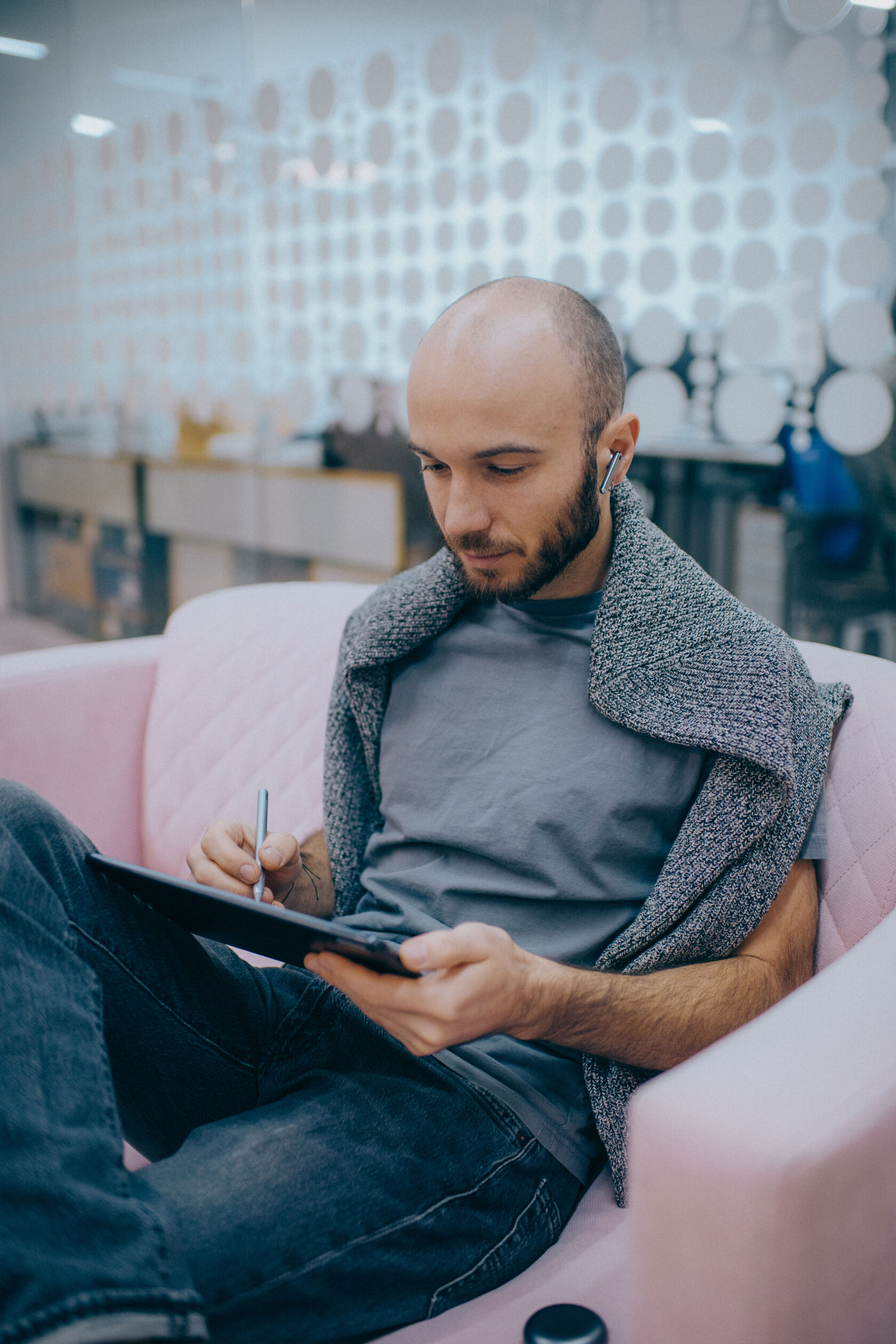 Інколи достатньо просто пересісти в інший кінець кімнати — змінюється кут зору, і працювати приємніше. Виконувати вдумливі завдання допомагає музика. Я майже цілодобово в навушниках: на зідзвонах, на пробіжці, за кермом і під час роботи. Навіть коли нічого не слухаю, сиджу в навушниках, щоби приглушити довколишні звуки. Використовую Bluetooth-навушники. Мені важливо їх не відчувати, а ще потрібен хороший мікрофон — щоби співрозмовнику було комфортно мене слухати.