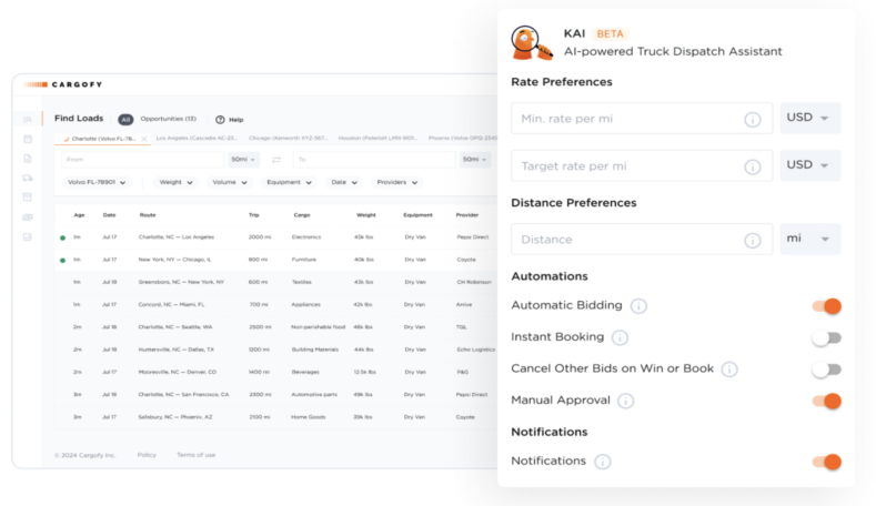 Cargofy — AI-диспетчер для автопарків, він дає змогу одному диспетчеру керувати флотом, у 10 разів більшим за звичайний, а автопарк із 315 вантажівок економить до $83 000 на місяць, завдяки зменшенню простоїв і оптимізації маршрутів.
