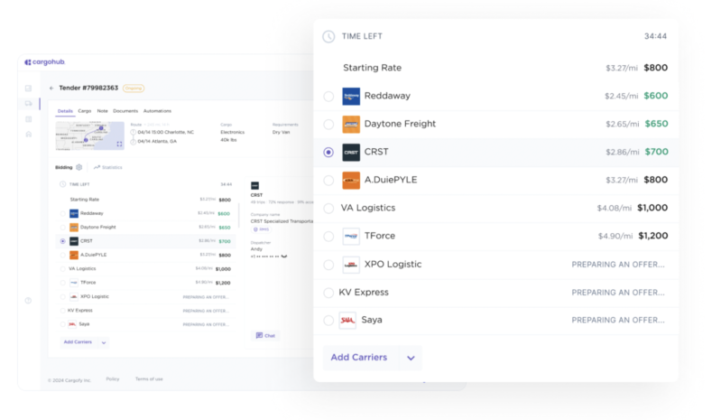 Cargohub — платформа для автоматизації закупівель логістичних послуг, вона скорочує тендерний цикл з кількох днів до кількох годин і автоматизує весь процес закупівель — від RFQ до формування зустрічних пропозицій. За останні шість місяців компанія подвоїла виторг Cargohub і досягла $9,1 млн ARR з валовою маржинальністю 71% та більш ніж 2000 платними клієнтами Cargofy.