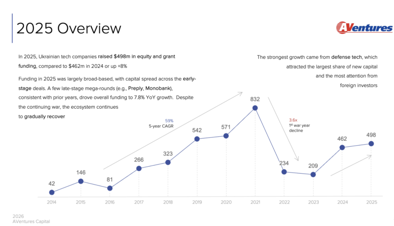 AVentures Capital опублікувала щорічне дослідження Dealbook of Ukraine — 2026 edition, в якому підсумувала стан української технологічної екосистеми за 2025 рік і перші угоди 2026-го.