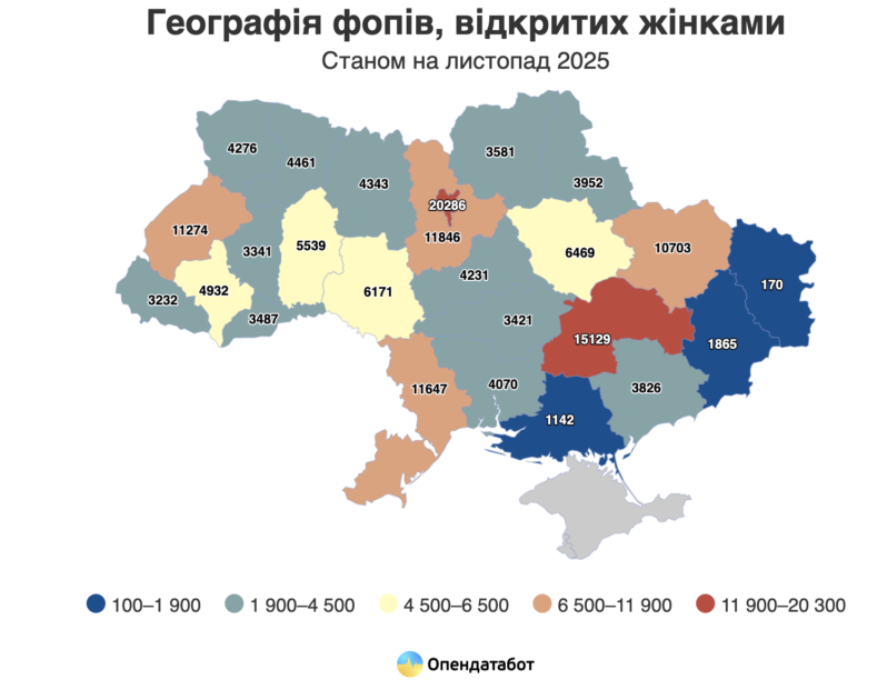 Жінки відкрили 61% нових ФОПів в Україні у 2025 році — це понад 153 000 реєстрацій за 10 місяців. Про це повідомляє «Опендатабот». Розповідаємо деталі.