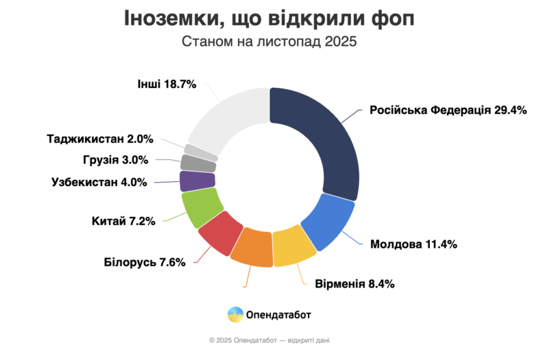 Окремо в реєстрі відзначають активність іноземок. Найбільше ФОПів зареєстрували громадянки росії — 175, Молдови — 68, Вірменії — 50, Азербайджану — 49.