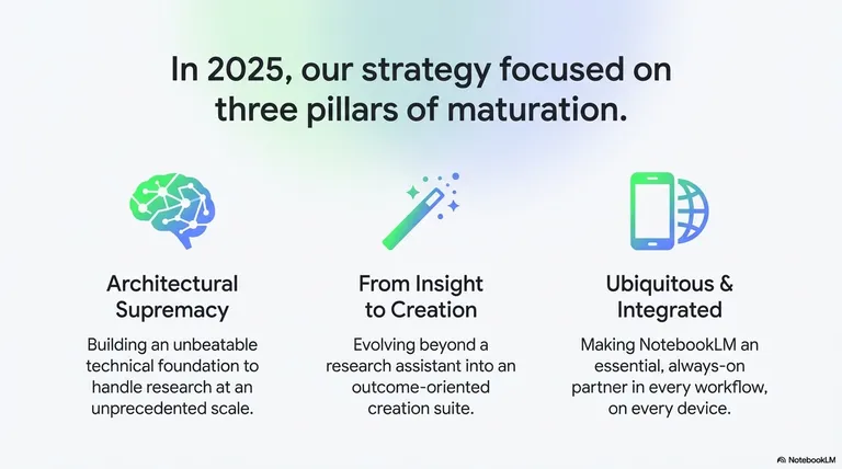 Інструмент працює з великими обсягами тексту — від довгих статей до цілих книг. NotebookLM автоматично структурує та візуалізує контент у вигляді презентації, перетворюючи його на послідовну історію, зручну для пояснень.