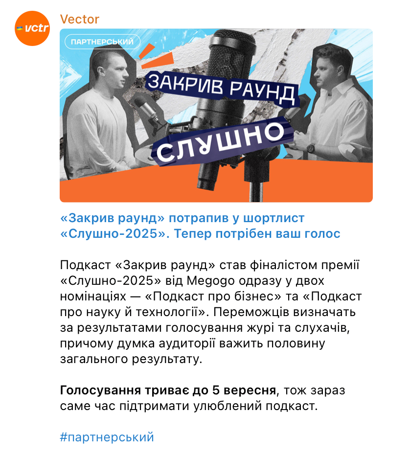 «Закрив раунд» потрапив у шортліст «Слушно-2025». Тепер потрібен ваш голос — максимально класичне рекламне оголошення, яке працює для такого інфоприводу.