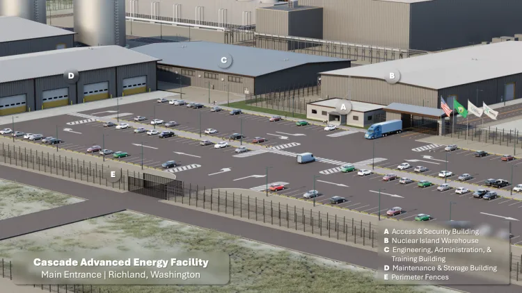 Компанія оприлюднила рендери першої станції поблизу Річленда, Вашингтон. Об’єкт під назвою Cascade Advanced Energy Facility розміщуватиме три секції сумарною потужністю 960 МВт, цього достатньо для живлення 770 000 домогосподарств.