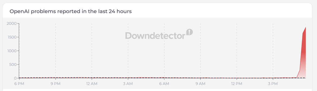 Сьогодні, 20 квітня, стало відомо про масштабний технічний збій у роботі OpenAI, який переважно вплинув на користувачів платформи ChatGPT. Вже більше 4 000 користувачів повідомили про проблему, однак точна причина цього масштабного збою наразі невідома.