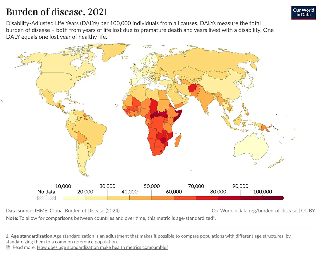 Очевидно, хворі люди не можуть працювати, а померлі — передавати досвід, тож високий рівень захворюваності безпосередньо збіднює країни. До цього додається ще один ефект: що більше хвороб, то вищою стає дитяча смертність. Коли діти часто помирають, батьки прагнуть мати більше нащадків, «розподіляючи ризик», — і в результаті можуть менше інвестувати в розвиток кожної окремої дитини. Це знижує загальну продуктивність населення.