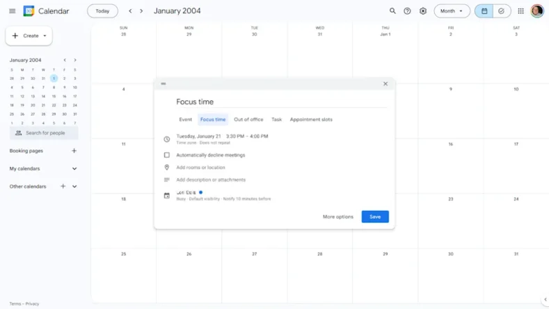 Якщо ваш календар складається лише з дзвінків і зустрічей, спробуйте нову функцію «Час у фокусі» (доступну в Google Workspace).