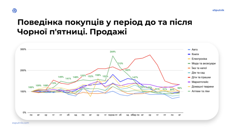 Динаміка продажів у період Чорної п’ятниці (ЧП) суттєво відрізняється залежно від галузі: