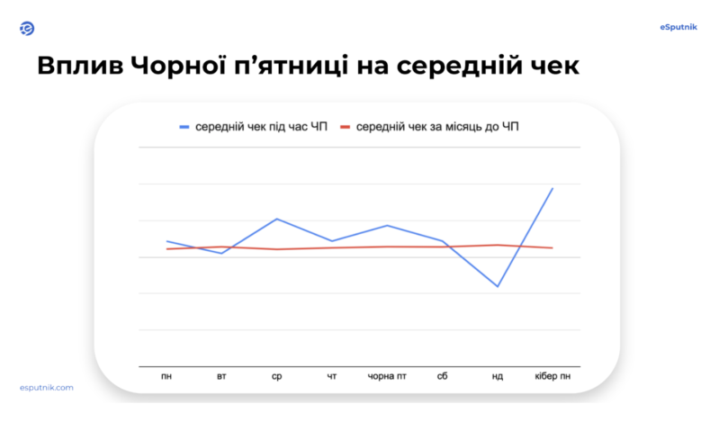 Під час Чорної пʼятниці середній чек зростає на 18%, а до понеділка — уже на 50%.