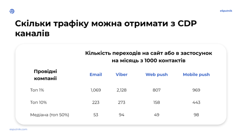 Аналітика eSputnik показує, скільки переходів бізнес може очікувати з 1000 контактів у різних сегментах: