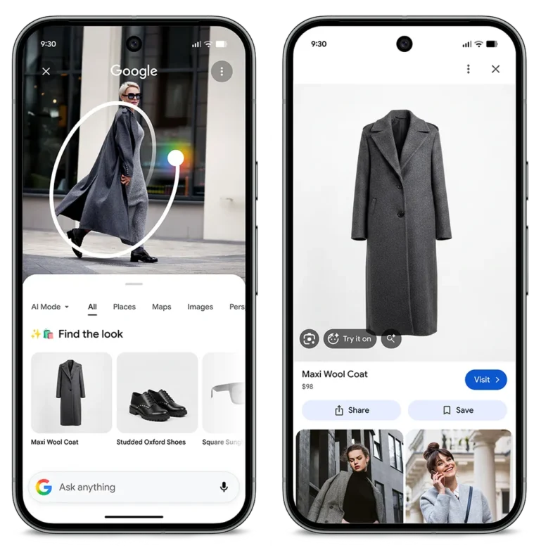 Функція «Обвести для пошуку» дозволяє отримати більше інформації про будь-що на екрані. Достатньо обвести об’єкт — і система знаходить його в пошуку. Тепер вона розпізнає кілька об’єктів одночасно. Також якщо ви побачили вбрання, яке сподобалося, достатньо обвести його — і Google покаже всі елементи образу, від пальта до взуття, в межах одного пошуку.