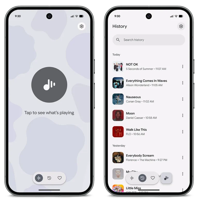 Інструмент розпізнавання музики «Зараз грає» став окремим застосунком. Він зберігає історію розпізнаних треків — від нових знахідок до давно знайомих композицій. Звідти можна одразу відкрити пісню у своєму музичному сервісі.
