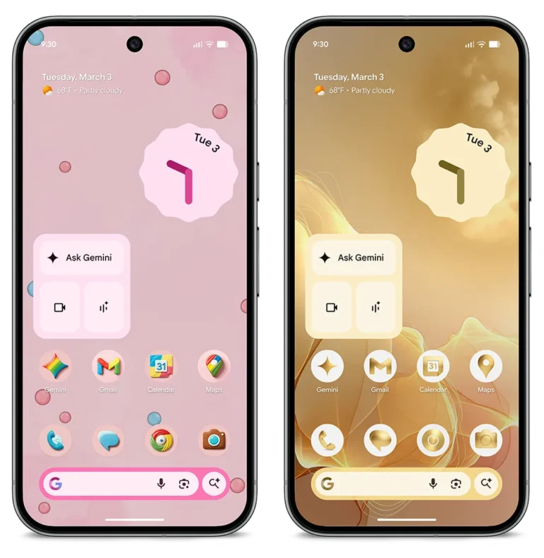 Домашній екран можна персоналізувати за допомогою п’яти AI-стилів, які стилізують вигляд значків. Також доступна тематична добірка в стилі «Губка Боб Квадратні Штани».