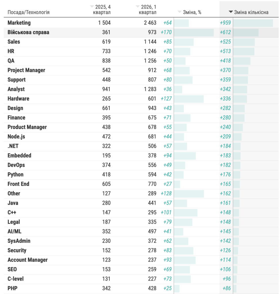 Порівняння кількості вакансій у ІV кварталі 2025-го та І кварталі 2026-го