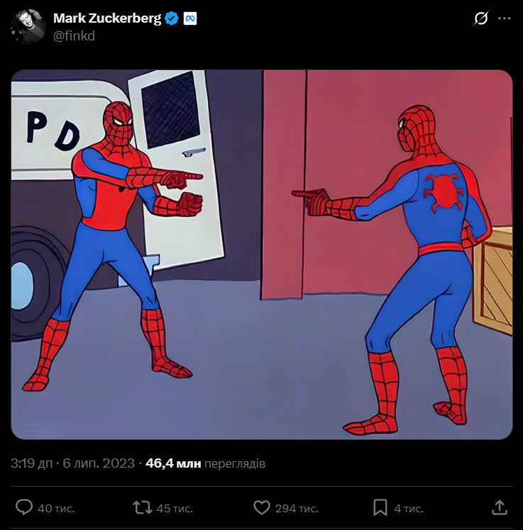 5 липня 2023-го Meta запустила Threads — прямого конкурента X від Ілона Маска. Час для виходу на ринок вибрали досить вдалий, адже Маск обмежив кількість твітів, встановив платну верифікацію та хаотично звільняв співробітників. Рекламодавці масово тікали, а X був вразливим.