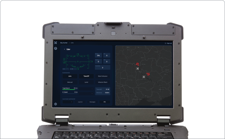Наразі більшість перехоплень відбувається у напівручному режимі: оператор бачить ціль на радарі, піднімає дрон‑перехоплювач і веде його до цілі вручну. Sky Hunter змінює цю логіку — після того як оператор вказує ціль в застосунку запускається місія і дрон автоматично слідує за ціллю за координатами радару. На останніх 200-300 метрах пілот повертає собі ручне управління і збиває ціль.