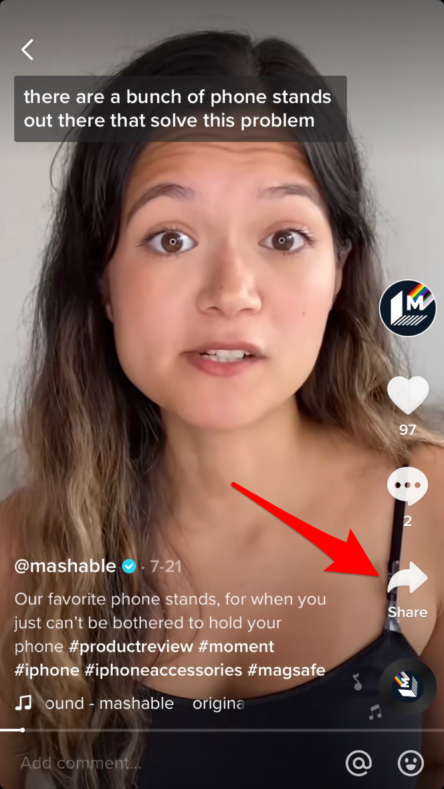 Натисніть білу стрілку «Поділитися» праворуч на екрані.