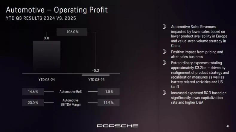 Перехід на нову модельну стратегію суттєво позначився на фінансах компанії: операційний прибуток Porsche впав на 99% — з понад 4 млрд євро до 40 млн євро за дев’ять місяців 2025 року.