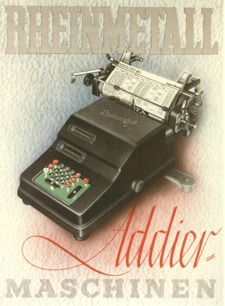 Союзники заборонили виробництво зброї. Rheinmetall вдруге за життя компанії повернувся туди ж, де був після 1919-го: зброяр без права робити зброю. Заводи переладнали на цивільні замовлення — від обладнання для портів і кранів до офісної техніки на кшталт друкарських машинок, які в Зоммерді під брендом Rheinmetall / Supermetall випускали аж до початку 1960-х. Паралельно група намагалася зайти навіть у кухню: у 1960-х Rheinmetall через участь у WMF асоціюється ще й із модними тоді скороварками WMF Super 3.