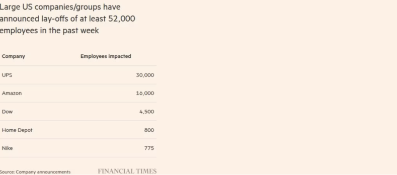 Найбільші корпорації США, зокрема Amazon, UPS і Nike, анонсували масштабні скорочення персоналу. Про це повідомляє Financial Times. Розповідаємо деталі.