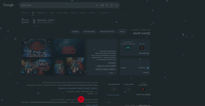 А Google, вже у звичному для себе форматі, до прем’єри додав великодку під час пошуку. Вводите «дивні дива» або stranger things, кидаєте кубик (d20) з Dungeons & Dragons — і отримуєте «виворіт» свого екрана з попелом. Щоправда, взаємодіяти у такому інтерфейсі не можна.
