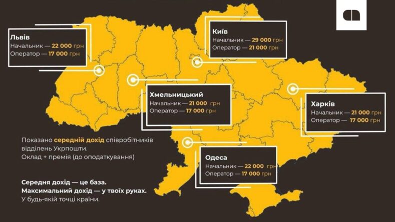 У містах, зокрема в Києві, мінімальна зарплата не застосовується. За словами Смілянського, начальники відділень можуть отримувати від 30 000 грн залежно від обсягів роботи. Для операторів і керівників також діє система премій: