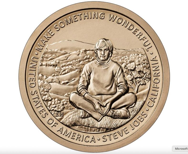 Монета стане рідкісним випадком, коли американська валюта вшановує не президента чи політика, а підприємця сучасної епохи. За задумом, дизайн зображує Джобса на тлі пагорбів Північної Каліфорнії з написами United States of America, California, Steve Jobs та Make Something Wonderful.