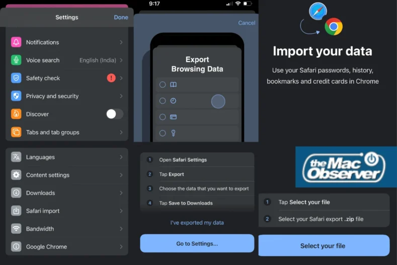 Компанія Google додала в Chrome для iPhone нову опцію Safari import, яка дозволяє переносити дані з браузера Apple без використання комп’ютера. Функція з’явилася в налаштуваннях Chrome і працює через імпорт файлу, експортованого безпосередньо із Safari.