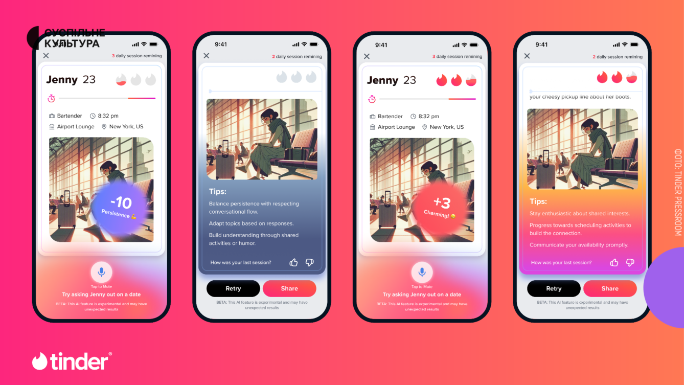 Match Group, материнська компанія Tinder, анонсувала нову ШІ-функцію Chemistry. Вона вже працює в Новій Зеландії та Австралії, а найближчими місяцями з’явиться в Україні та інших країнах.