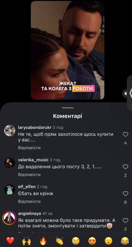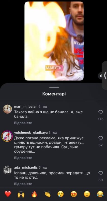 Активні інтернет-користувачі — покоління людей, які хочуть бути у здорових стосунках, будувати довіру, усвідомлено працювати з травмами. І саме цим очікуванням суперечить і ідея ролику, і реалізація. Адже нормалізується поведінка, яка не відповідає дорослій комунікації, і саме це читається як зневага до партнера і стосунків.