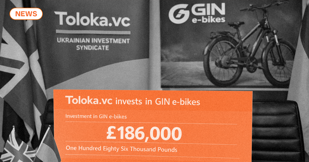 Toloka.vc оголосила про інвестицію 186 000 фунтів (майже $252 000) у британську компанію GIN e-bikes, яку нададуть у формі кредиту на два роки зі ставкою 12% річних. Інвестиція забезпечена активами компанії — парком електровелосипедів.