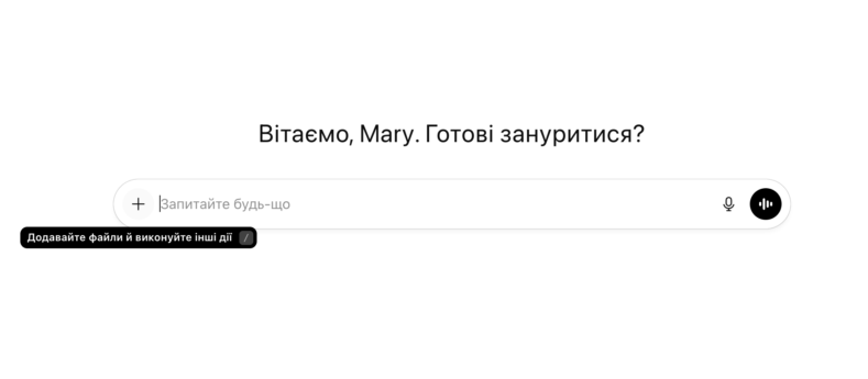 1. Відкрийте ChatGPT і натисніть кнопку «+» поруч із полем введення.