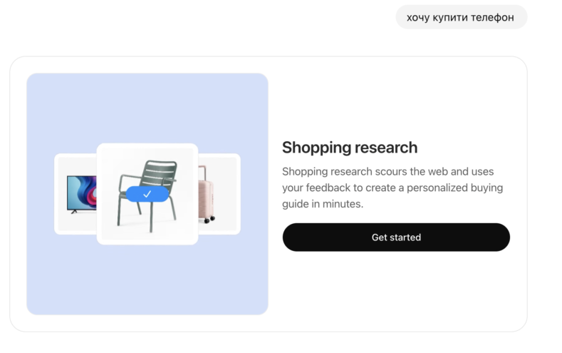 Компанія OpenAI запустила новий інструмент у ChatGPT — «Дослідження покупок», створений для пошуку, порівняння та відбору товарів. Редакція Vector перевірила і виявила, що функція уже доступна користувачам з України, включно для користувачів безплатної версії.