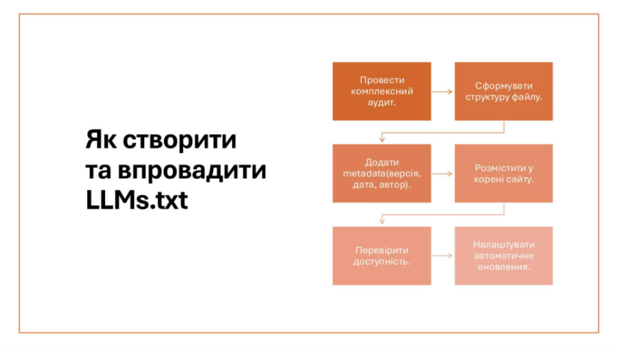 Водночас покладатися лише на LLMs.txt не варто. Якщо контент буде застарілим або недостатньо якісним, навіть ідеально оформлений файл не гарантує, що мовна модель правильно витлумачить інформацію. Саме тому його використання доцільно поєднувати з перевіреними практиками: