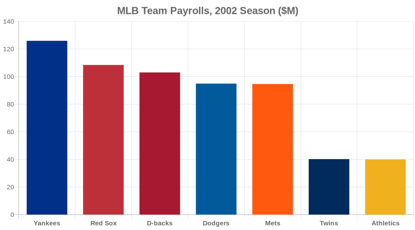 Бюджети у 2002 році. «Окленд» грав у тій самій лізі, що і «Янкіз» — за третину їхніх грошей