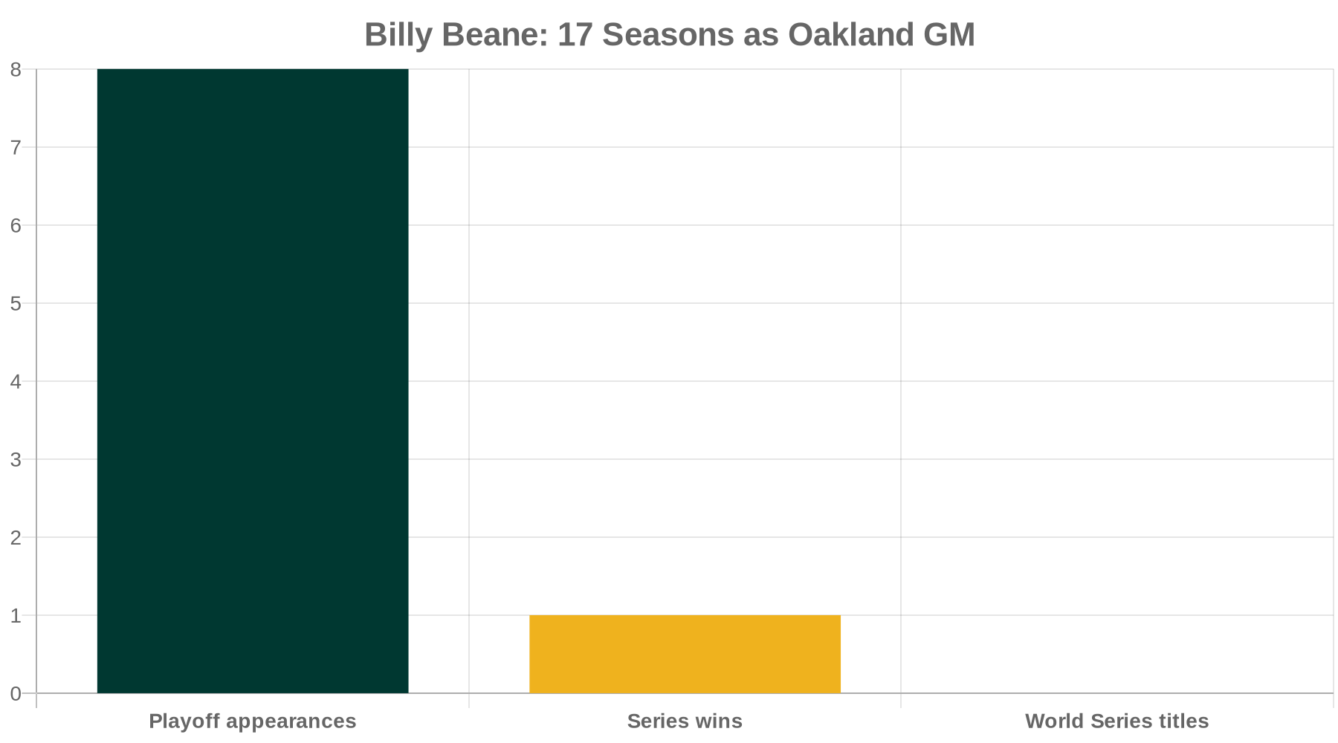У цю частину історії фільм не заходить навіть близько. За 17 сезонів Біна як генерального менеджера «Окленда» (1998–2015) команда 8 разів потрапляла у плей-оф. І виграла рівно одну серію плей-оф — у 2006 проти «Міннесоти». Усе.
