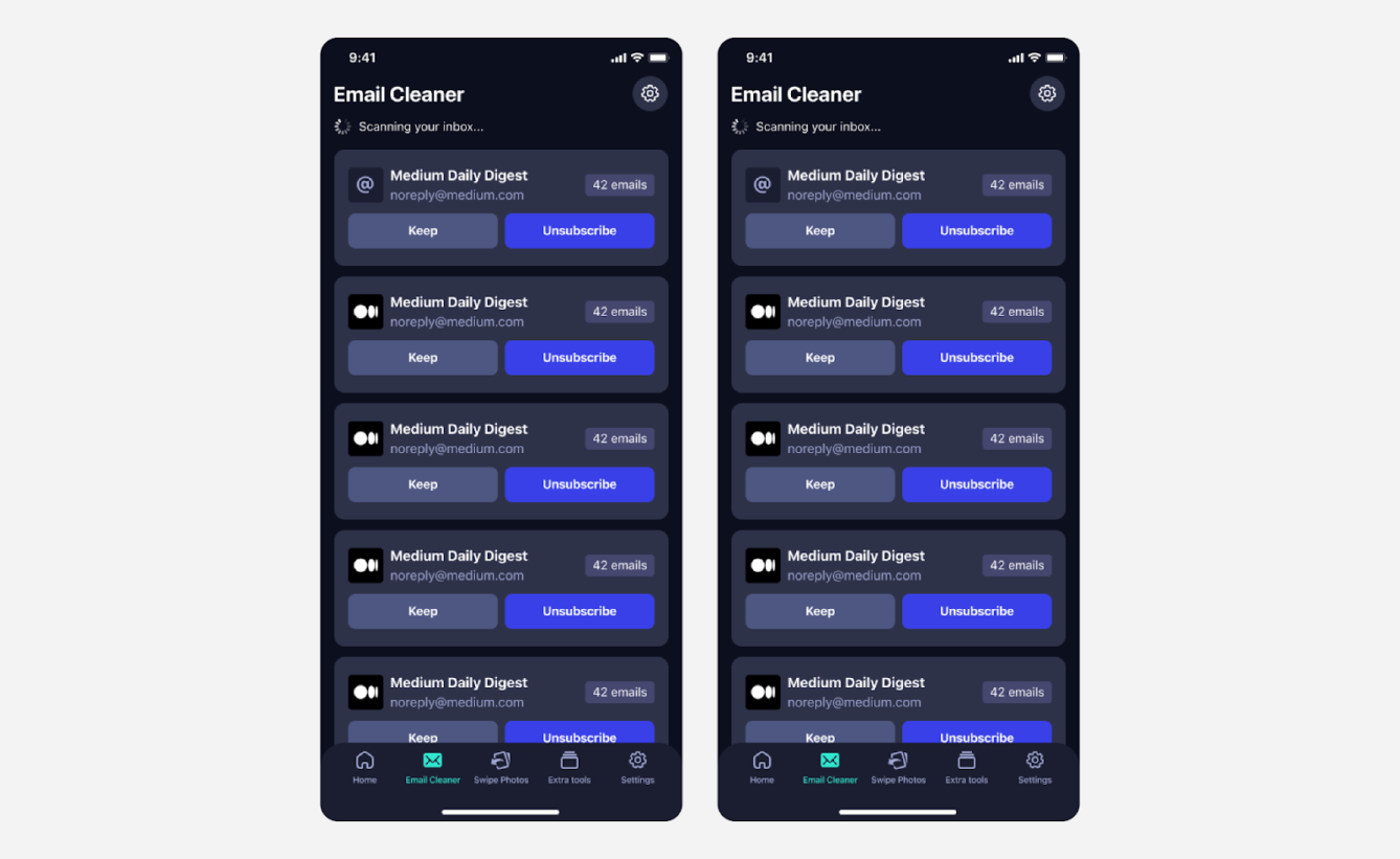Так ми сформували гіпотезу, провели дослідження, порівняли рішення конкурентів і запустили нову фічу Email Cleaner, яка допомагає впорядковувати пошту так само легко, як і галерею.